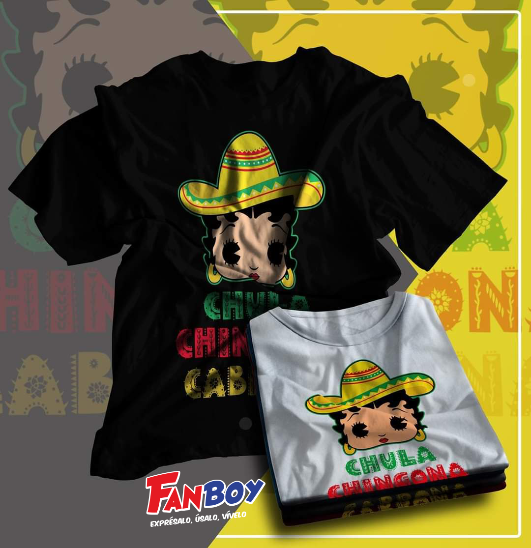 Luce tu orgullo con estilo y un toque de irreverencia con nuestra playera “Chula Chingona”, donde la icónica Bety Boop cobra vida con sombrero mexicano para recordarte que ser mexicana o mexicano es sinónimo de fuerza, belleza y carácter. Este diseño es perfecto para quienes se sienten orgullosos de sus raíces y no tienen miedo de brillar con autenticidad.