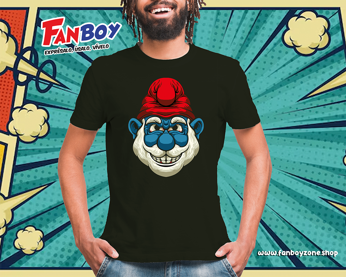 El lado oscuro también existe en la aldea… Esta playera de Papá Pitufo versión Evil trae un giro inesperado y divertido para los fans de lo retro con un toque irreverente.